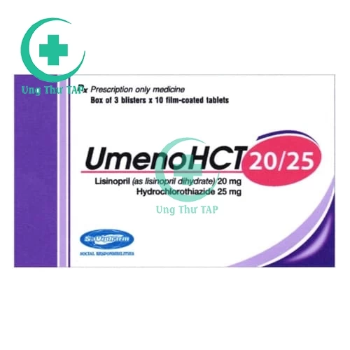 UmenoHCT 20/25 là thuốc được sản xuất và nghiên cứu bởi Dược phẩm SaVi. Thuốc UmenoHCT 20/25 điều chế dưới dạng viên nén, được chỉ định để điều trị tăng huyết áp nhẹ và vừa.
